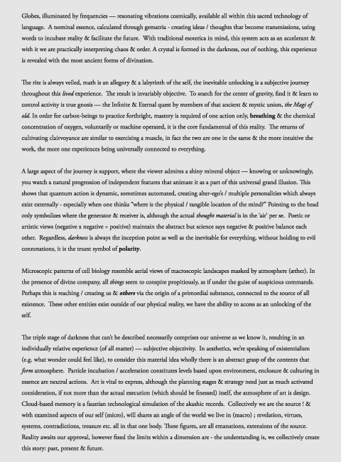Qabalistic Treatise Introduction To An Aesthetic Experience Of Light, 2014-2015